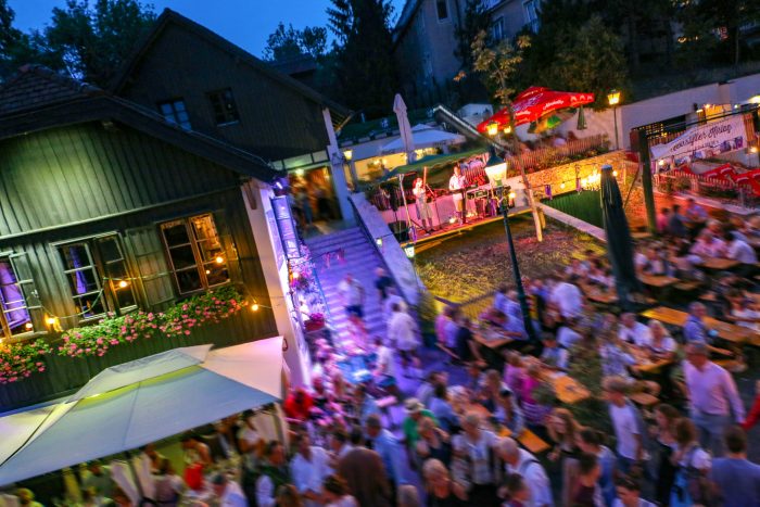 Errichtet wurde unser Gebäude um 1726 zuerst als Gemeinschaftskeller – hier befindet sich somit der älteste Weinkeller von Neustift am Walde – als Presshaus und zur gemeinschaftlichen Ausschank der Neustifter Weinhauer. Diese Aufgabe erfüllten die Räumlichkeiten des Kronenstüberls bis in die 60er Jahre des 20. Jahrhunderts und auch der Buschenschank oder Heurige wurde von der Gemeinde Neustift am Walde hier geboren. Im 18. Jahrhundert wurde das Haus auch als Aufbewahrungsort für alle kirchlichen Utensilien zweckentfremdet und trug bis 1753 den Namen Kirchenstöckl. Hier wurde das erste Wasserklosett, die Elektrizität, die Kanäle, durch den unter dem Haus fließenden Krottenbach, und als Sensation im 19. Jahrhundert der erste beleuchtete Gastgarten mittels Gaslicht installiert. In den Kriegsjahren waren Kriegsbetriebe untergebracht, die Lautsprecher für die weithin bekannten Volksempfänger produzierten. 1948 wurde der Betrieb unter großen Mühen wieder eröffnet und bis 1963 geführt.